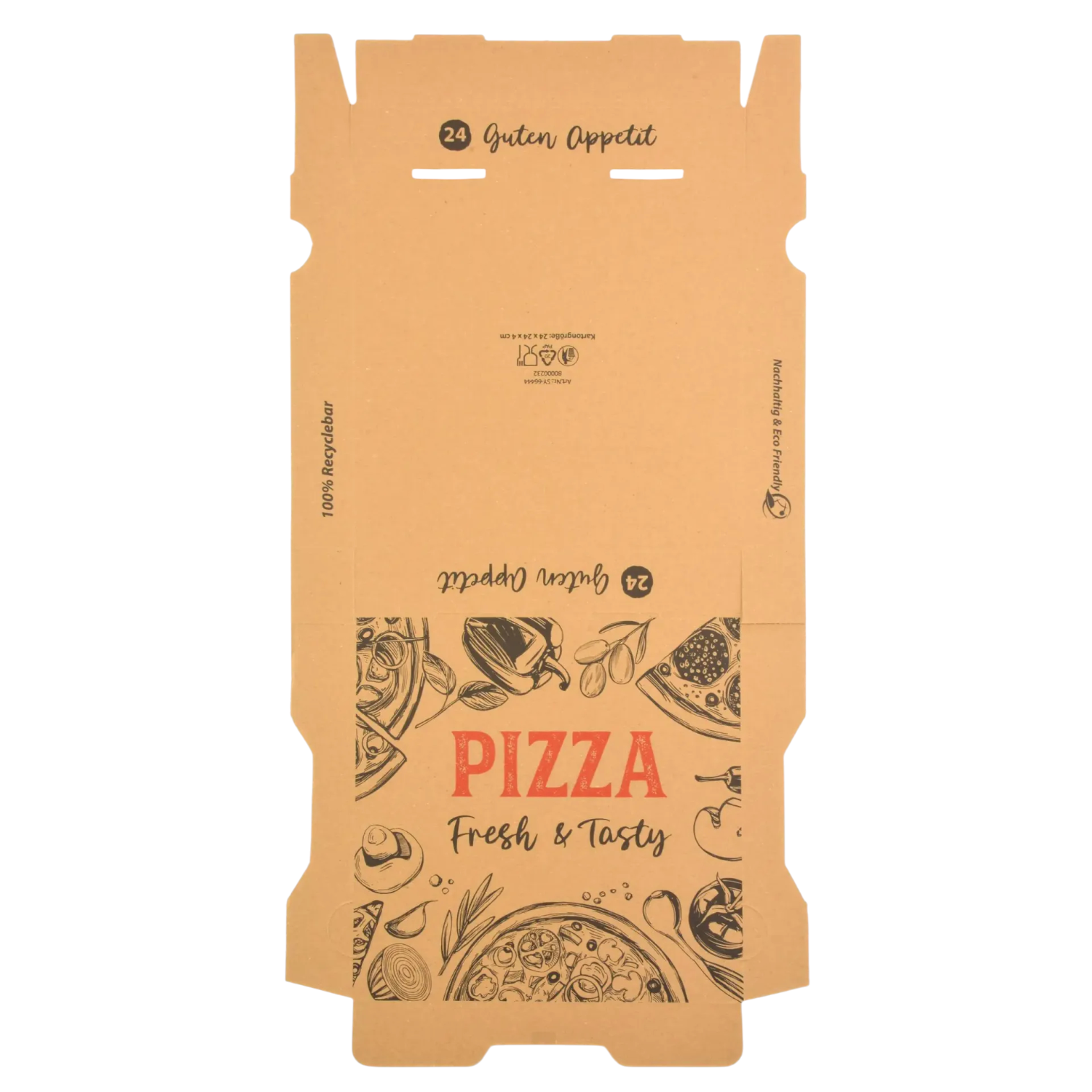 - stabiler, unbeschichteter Karton für den sicheren Pizzatransport